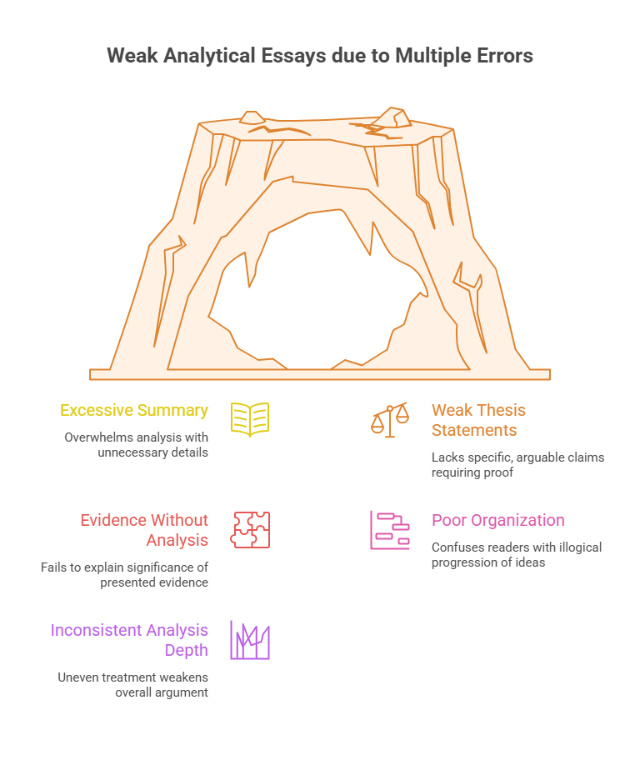 Avoiding common errors strengthens analytical writing significantly. Recognizing these mistakes helps you revise more effectively.