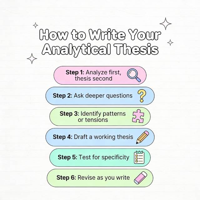 Once you have your thesis, you'll need to build the full essay around it. Check out our complete guide to how to write an analytical essay for step by step instructions on structure, evidence, and analysis