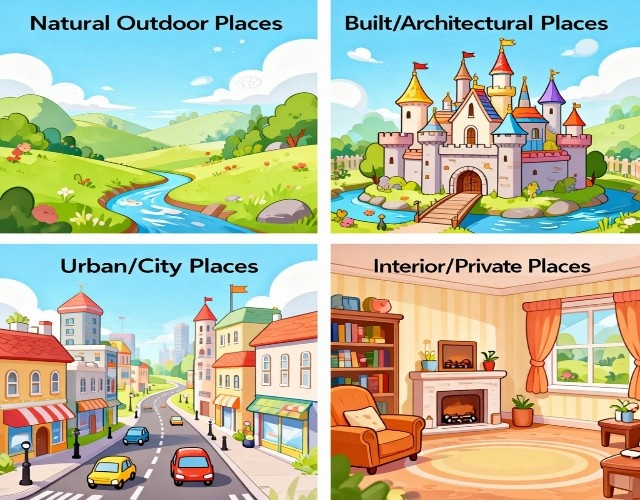 Need place topic ideas? Browse 250+ descriptive essay topics, including natural environments, urban spaces, historic buildings, personal locations, and travel destinations, organized by category.