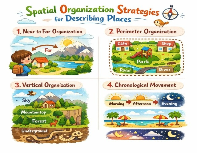 For detailed spatial organization templates and examples, see our descriptive essay outline guide.