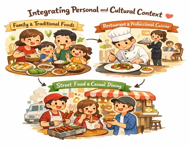 Your personal connection to the food will shine through in your writing. If you're describing your mother's biryani, you'll naturally include details about the aroma filling the kitchen, the way she toasts the spices, and how the rice grains separate perfectly on your plate. Those details come from observation and memory, not imagination.