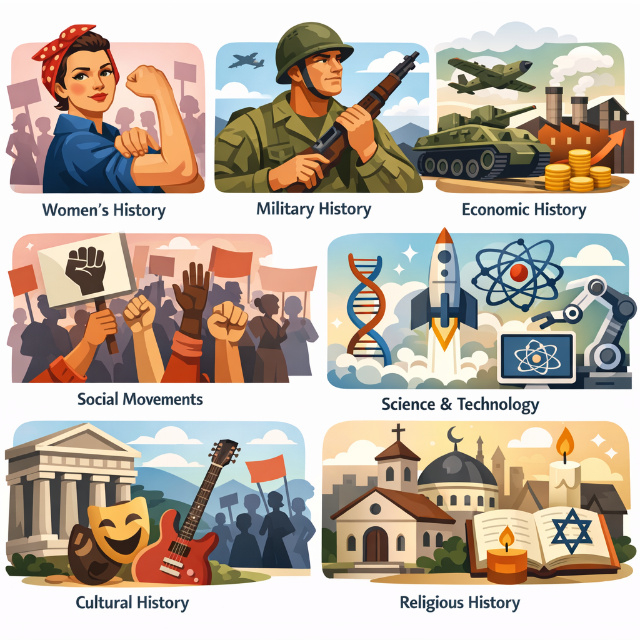 These topics cut across historical eras, examining themes that developed over centuries. They're perfect if your assignment asks you to trace developments over time.