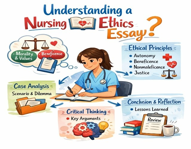 A nursing ethics essay is an academic piece that applies ethical theory to a clinical or professional nursing scenario. Where a nursing theory essay asks you to engage with models like Orem or Roy, an ethics essay focuses specifically on moral reasoning, identifying a dilemma, applying a framework, and defending a position.