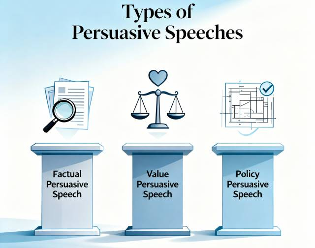 Need topics for each type? Explore our extensive list of persuasive speech topics to get ideas!