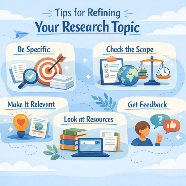 Once you have a research topic, you will need to fine-tune it. Here are tips to help you narrow it down: