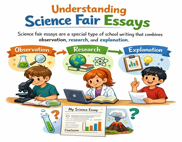Unlike regular essays, these essays are usually based on a student’s participation in, or visit to, a science fair. They are meant to show not only knowledge of scientific concepts but also curiosity, critical thinking, and practical application.