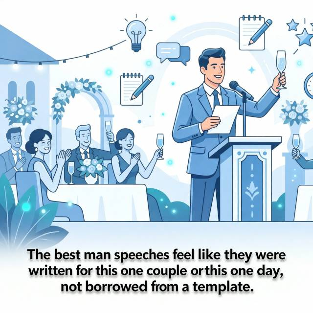 Keep this section clearly in best man territory for a broader look at all wedding speech openings. Check our guide on how to start a speech.