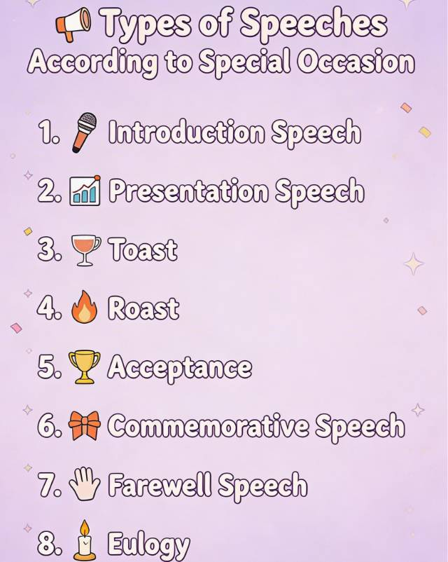 Apart from the above types, there are some other types of speeches as well, which we will address later!