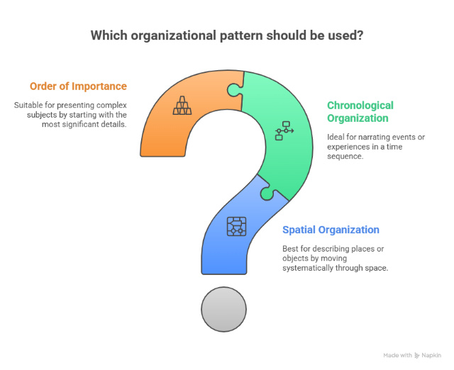 Organization matters in descriptive writing. Random details create confusion; structured description builds a coherent picture.