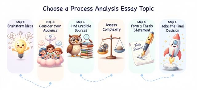Although there are no specific rules for choosing process analysis topics, professionals take some steps to make the process easier. The following step by step guide can help you choose interesting process essay ideas.